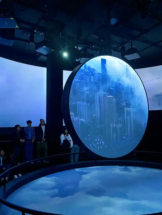 Grâce à une technologie de vol immersif dernier cri, vous êtes suspendu devant un écran sphérique géant et ressentez chaque mouvement comme dans un vrai survol.